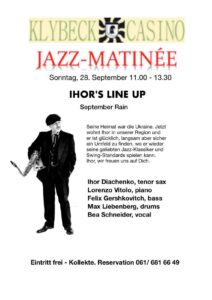 Seine Heimat war die Ukraine. Jetzt wohnt Ihor in der Region Basel und ist glücklich, langsam aber sicher ein Umfeld zu finden, wo er wieder seine geliebten Jazz-Klassiker und Swing-Standards spielen kann – wir freuen uns drauf!